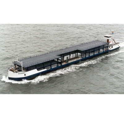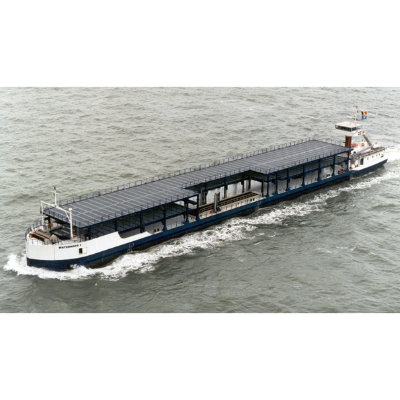inland waterways, for reduced air draft and estuary sailing, and has a capacity of approx. 550 passenger cars on five decks. Lorries and trailers can be transported too.